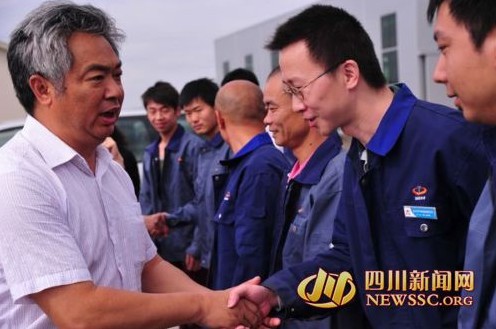 江油市政協(xié)主席范來山為奔赴災(zāi)區(qū)一線得天豐員工送去了祝愿